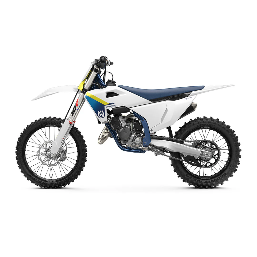 The TC 125 receives multiple technical upgrades for 2025 to maintain its position at the head of the highly competitive 125 cc class. Updated bodywork and ergonomics offer riders improved ease of movement on the motorcycle while its lighter chromium molybdenum frame, updated WP suspension, and revised rear shock linkage ensure improved comfort and cornering. Light and strong wheels, which are assembled using D.I.D rims, are fitted with race-tested Dunlop MX34 tires for stability and improved traction. Premium ProTaper handlebars offer a confidence-inspiring steering feel. For 2025, the TC 125 is completed with stunning white and blue graphics that are applied using in-mold technology for a long-lasting finish.