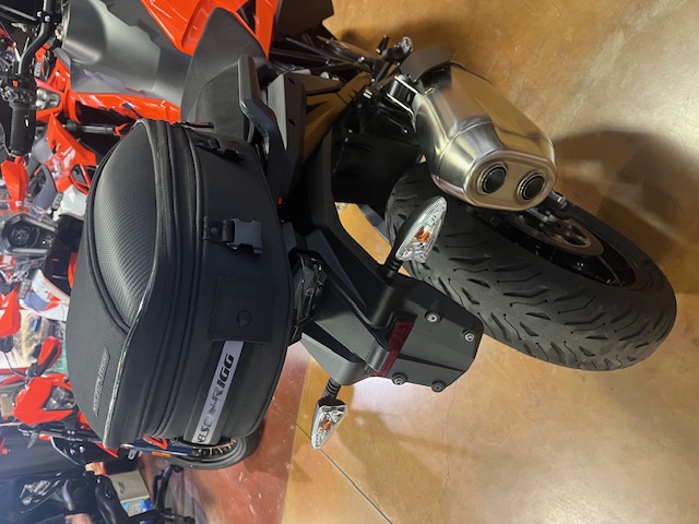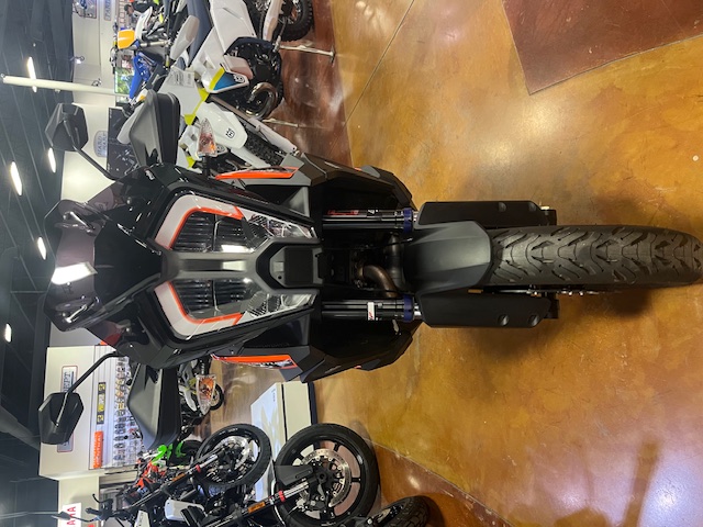 Eyes will be drawn to the two new shades: the glow of the unmissable KTM orange-and-black trim or the more neutral but elegant hue of KTM’s graded gray aesthetic. The orange — stretching all the way through to the forged aluminum subframe and engineered to offer a lower seat (at 869 millimeters or 849 millimeters), superb load-carrying capability and containing a raft of components — is like a badge of honor for hardcore explorers. However, the classy gray spreads across the bodywork, chiseled to prioritize agile handling, front-end confidence, comfort and protection, and it houses the 23-liter three-part tank with superlative fuel range. The tone is as fetching for a swift dash into the office as it would be for a blast across country borders.