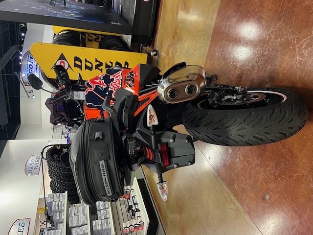 Eyes will be drawn to the two new shades: the glow of the unmissable KTM orange-and-black trim or the more neutral but elegant hue of KTM’s graded gray aesthetic. The orange — stretching all the way through to the forged aluminum subframe and engineered to offer a lower seat (at 869 millimeters or 849 millimeters), superb load-carrying capability and containing a raft of components — is like a badge of honor for hardcore explorers. However, the classy gray spreads across the bodywork, chiseled to prioritize agile handling, front-end confidence, comfort and protection, and it houses the 23-liter three-part tank with superlative fuel range. The tone is as fetching for a swift dash into the office as it would be for a blast across country borders.